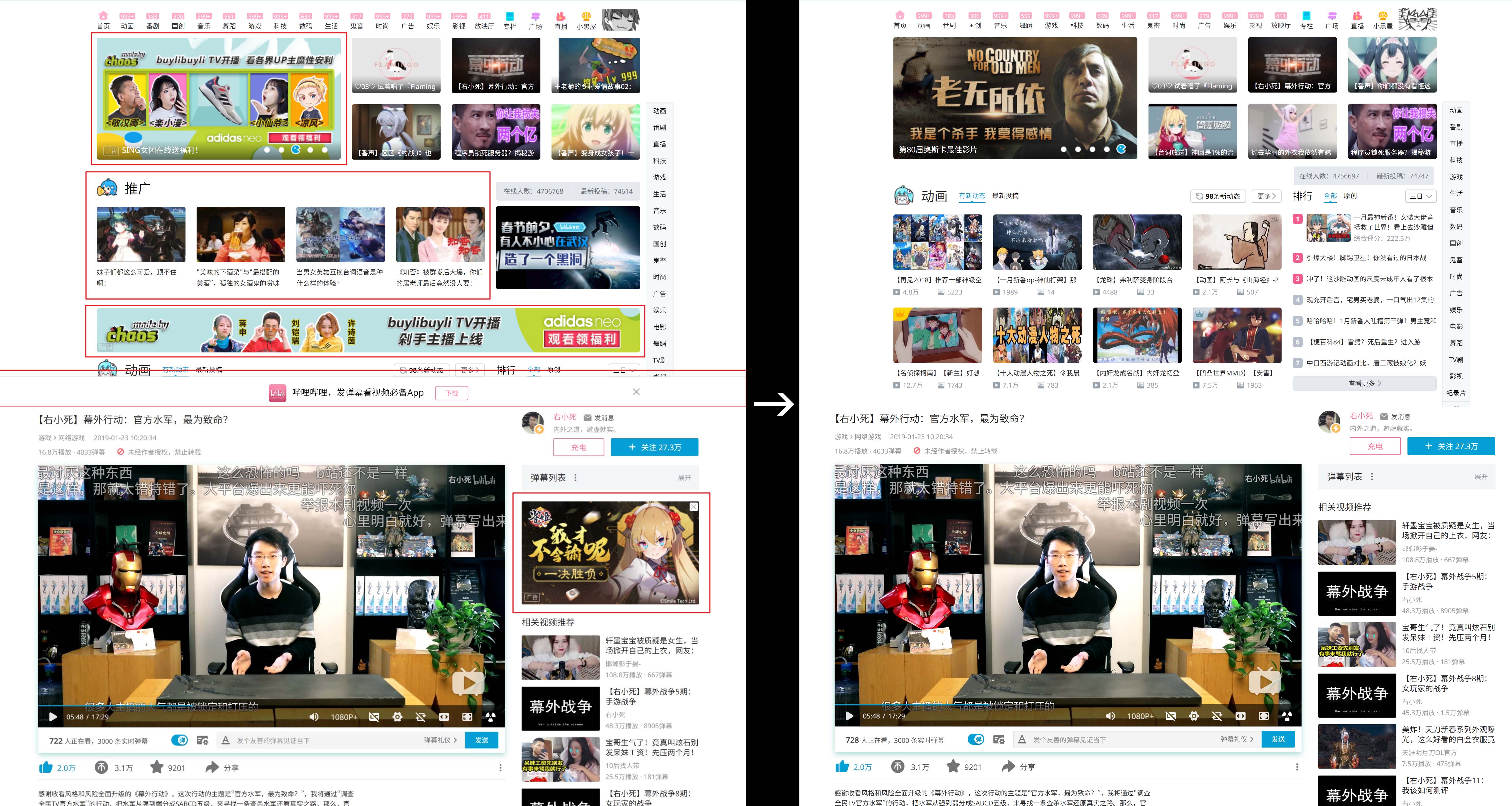 - 新版: 视频区默认的新版布局