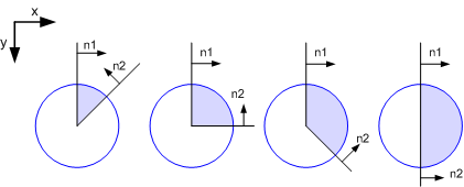 The figure below shows four examples of different wedges and the corresponding normal vectors (n1, n2). In order to get correct antialiasing all vectors must be normalized to a length of one.